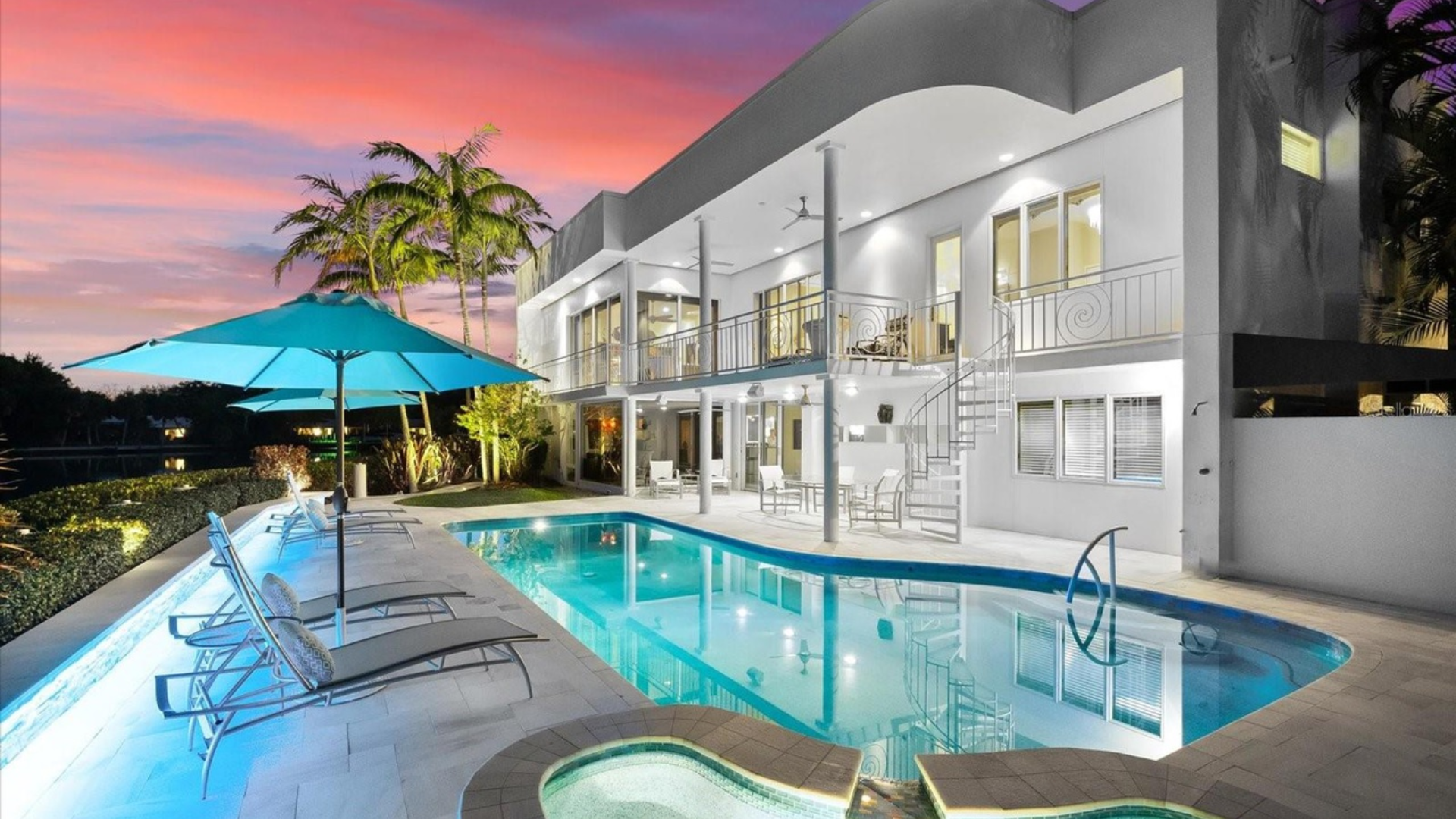 Highlight first and second-story architecture of the home and large plant material